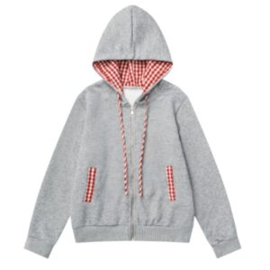 Gray Plaid Patchwork Slim Hoodie