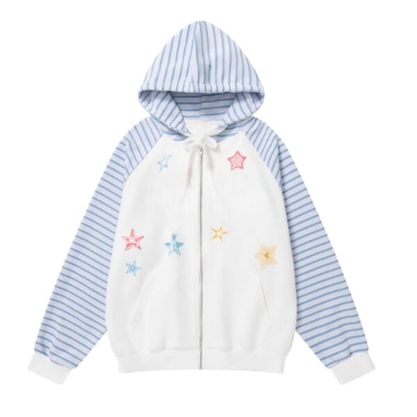 Colorful Star Print Striped Hoodie